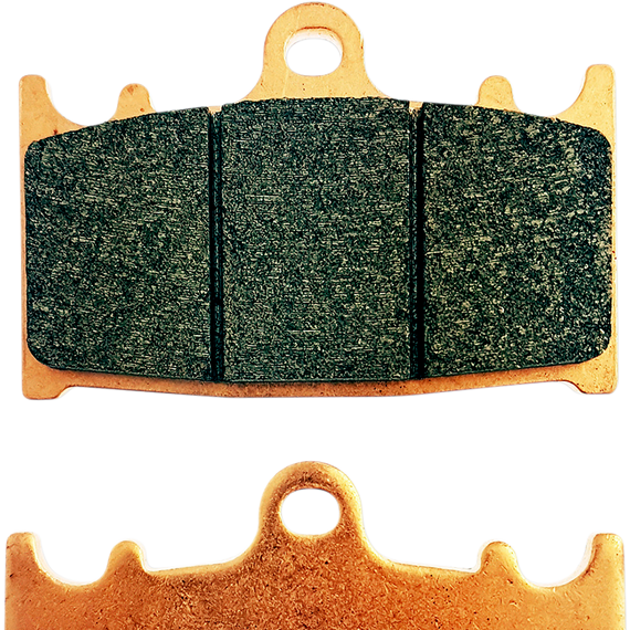 Caracteristicas: Asbestos and nickel-free Uses an organic base material for outstanding friction along with a soft, non-aggressive metal that allows the pad to glide on the disc, providing better control Universal, sintered metal compound that is a great OEM upgrade Offers a powerful initial bite and also a longer pad life Good pad choice for all types of street sport riding conditions Compatible with cast iron, stainless steel, and Carbiron materials and, when used with Braking rotors, provide the greatest control and braking power available