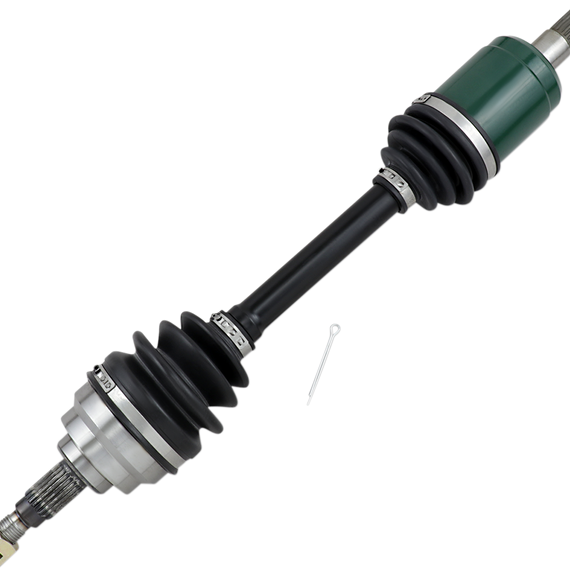 Caracteristicas: Precision machined and heat treated solid chromoly steel center shaft, cages, races and ball bearings up to 35% stronger Highest quality, most reliable, and toughest constant velocity axles on the market Manufactured in a state-of-the-art ISO9001 and TS16949 certified factory Induction heat treated joints packed with high performance moly grease Designed to withstand the most rigorous conditions and terrain High-strength spring steel retaining clips (where required) Torture tested to failure to ensure maximum durability Exceed OEM quality in fit, form and function Secure stainless steel dust boot clamps Fully assembled for easy installation Precision rolled splines and threads