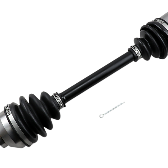 Caracteristicas: Precision machined and heat treated solid chromoly steel center shaft, cages, races and ball bearings up to 35% stronger Highest quality, most reliable, and toughest constant velocity axles on the market Manufactured in a state-of-the-art ISO9001 and TS16949 certified factory Induction heat treated joints packed with high performance moly grease Designed to withstand the most rigorous conditions and terrain High-strength spring steel retaining clips (where required) Torture tested to failure to ensure maximum durability Exceed OEM quality in fit, form and function Secure stainless steel dust boot clamps Fully assembled for easy installation Precision rolled splines and threads