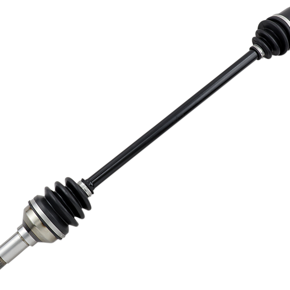 Caracteristicas: Precision machined and heat treated solid chromoly steel center shaft, cages, races and ball bearings up to 35% stronger Highest quality, most reliable, and toughest constant velocity axles on the market Manufactured in a state-of-the-art ISO9001 and TS16949 certified factory Induction heat treated joints packed with high performance moly grease Designed to withstand the most rigorous conditions and terrain High-strength spring steel retaining clips (where required) Torture tested to failure to ensure maximum durability Exceed OEM quality in fit, form and function Secure stainless steel dust boot clamps Fully assembled for easy installation Precision rolled splines and threads