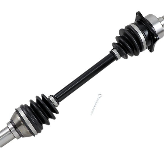 Caracteristicas: Precision machined and heat treated solid chromoly steel center shaft, cages, races and ball bearings up to 35% stronger Highest quality, most reliable, and toughest constant velocity axles on the market Manufactured in a state-of-the-art ISO9001 and TS16949 certified factory Induction heat treated joints packed with high performance moly grease Designed to withstand the most rigorous conditions and terrain High-strength spring steel retaining clips (where required) Torture tested to failure to ensure maximum durability Exceed OEM quality in fit, form and function Secure stainless steel dust boot clamps Fully assembled for easy installation Precision rolled splines and threads