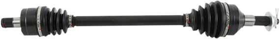 Caracteristicas: Axles are 20% stronger than OEM, 50% stronger than competing aftermarket axles and last 12 times longer than competing axles Axles feature eight precision ball bearings with cage and race sizes that are up to 35% larger for greatly increased CV joint strength Manufactured in facilities that are certified and meet the ISO 9001 quality manufacturing standard Designed with a larger-than-stock chromoly axle shaft and low-profile allow clamps