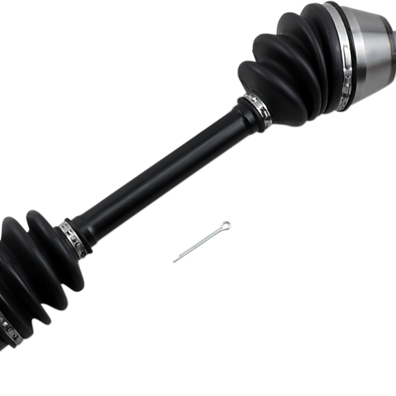 Caracteristicas: Precision machined and heat treated solid chromoly steel center shaft, cages, races and ball bearings up to 35% stronger Highest quality, most reliable, and toughest constant velocity axles on the market Manufactured in a state-of-the-art ISO9001 and TS16949 certified factory Induction heat treated joints packed with high performance moly grease Designed to withstand the most rigorous conditions and terrain High-strength spring steel retaining clips (where required) Torture tested to failure to ensure maximum durability Exceed OEM quality in fit, form and function Secure stainless steel dust boot clamps Fully assembled for easy installation Precision rolled splines and threads