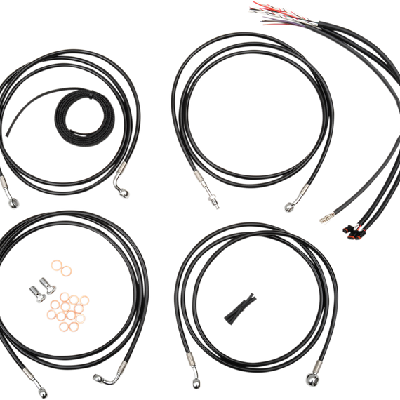 Complete Black Vinyl Braided Handlebar Cable/Brake Line Kit for 12" - 14" Ape Hanger Handlebars47367