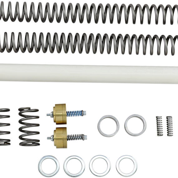 Caracteristicas: Race Tech complete front-end suspension kits improve comfort and performance of damping rod forks Kits come with Race Tech Gold Valve cartridge fork emulators and high-performance springs Include hardware to lower bike 1” or 2”