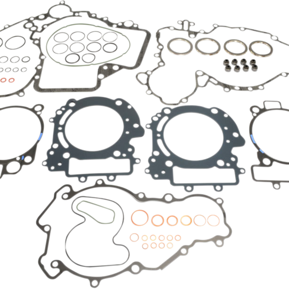 Caracteristicas: Superior-quality gasket sets from Athena Head gaskets feature rubber-coated spring steel construction Soft steel base gaskets are rubber coated Steel core materials feature high springback and superior tensile strength Revolutionary transparent coating guarantees a perfect seal even at extremely high temperatures High-temperature blue silicone beading on most critical flat gaskets Includes all necessary top-quality gaskets, rubber parts and valve stem seals to rebuild top-end and complete engines respectively Oil seals not included