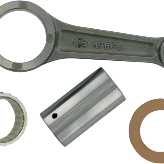 Caracteristicas: Heavy-duty OE replacement connecting rods Certified 8620 AISI steel provides superior strength Crankpins are manufactured from hot-rolled ASTM 4115 and case hardened to 58-62Rc Feature the latest in caged needle roller bearing designs for high rpm longevity Uniquely designed big end uses strategically located side scalloping and vent slots to minimize bearing race distortion at high rpm Small ends are double drilled to supply extra lubrication and cooling to the wrist pin bearing, which is especially important when the piston crown is close to the wrist pin bearing Shot-peened to eliminate surface stress risers and to smoothly blend together the rod forging's radiuses Double honing produces an ultra-round bearing surface for reliability at high rpm Most rod assemblies are sold complete with rod, crank pin, crank pin bearing, top-end bearing and silver-coated bronze phosphor thrust washers Compatible with Hot Rods and OE crankshafts Made in U.S.A.; connecting rod manufactured at Hot Rods Iowa facility