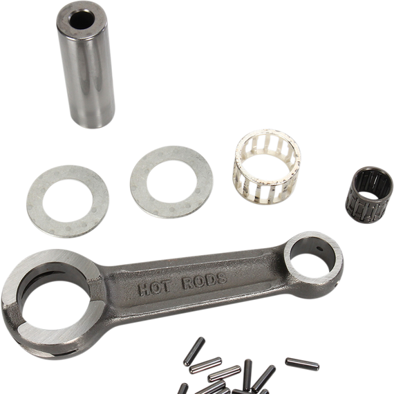 Caracteristicas: Heavy-duty OE replacement connecting rods Certified 8620 AISI steel provides superior strength Crankpins are manufactured from hot-rolled ASTM 4115 and case hardened to 58-62Rc Feature the latest in caged needle roller bearing designs for high rpm longevity Uniquely designed big end uses strategically located side scalloping and vent slots to minimize bearing race distortion at high rpm Small ends are double drilled to supply extra lubrication and cooling to the wrist pin bearing, which is especially important when the piston crown is close to the wrist pin bearing Shot-peened to eliminate surface stress risers and to smoothly blend together the rod forging's radiuses Double honing produces an ultra-round bearing surface for reliability at high rpm Most rod assemblies are sold complete with rod, crank pin, crank pin bearing, top-end bearing and silver-coated bronze phosphor thrust washers Compatible with Hot Rods and OE crankshafts Made in U.S.A.; connecting rod manufactured at Hot Rods Iowa facility