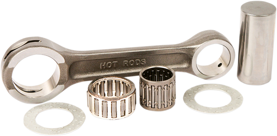 Caracteristicas: Heavy-duty OE replacement connecting rods Certified 8620 AISI steel provides superior strength Crankpins are manufactured from hot-rolled ASTM 4115 and case hardened to 58-62Rc Feature the latest in caged needle roller bearing designs for high rpm longevity Uniquely designed big end uses strategically located side scalloping and vent slots to minimize bearing race distortion at high rpm Small ends are double drilled to supply extra lubrication and cooling to the wrist pin bearing, which is especially important when the piston crown is close to the wrist pin bearing Shot-peened to eliminate surface stress risers and to smoothly blend together the rod forging's radiuses Double honing produces an ultra-round bearing surface for reliability at high rpm Most rod assemblies are sold complete with rod, crank pin, crank pin bearing, top-end bearing and silver-coated bronze phosphor thrust washers Compatible with Hot Rods and OE crankshafts Made in U.S.A.; connecting rod manufactured at Hot Rods Iowa facility