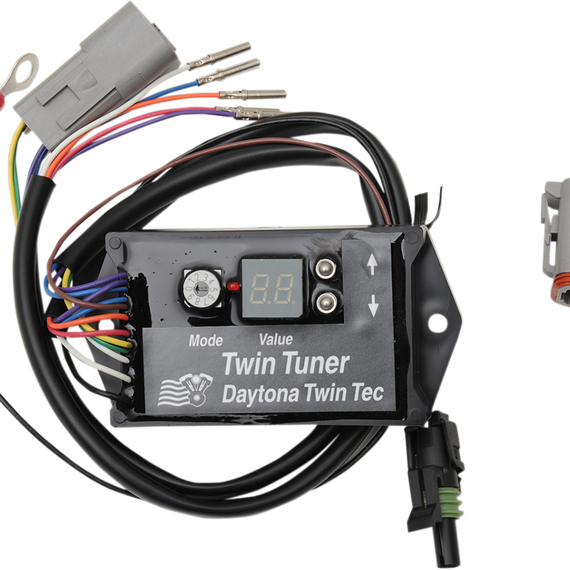 Caracteristicas: Mode and up/down pushbutton switches make fuel trim adjustments in the rpm and throttle position ranges required by most applications; fuel trim value is displayed on a bright daylight-readable LED display Compatible with Twin Scan II+ Tuning Aid - install the Twin Scan II+ and ride the bike, then copy the air/fuel ratio corrections calculated by the Twin Scan II+ into the PC Link Tuner software Allows easy adjustments to OEM Delphi fuel-injection systems to improve performance and match the requirements of performance parts May be compatible with other controller maps Compact size - only 4" L x 2" W x .5" H Easy plug-in installation and setup Made in the U.S.A.