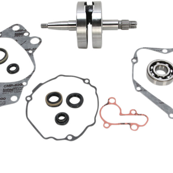 Caracteristicas: Crankshaft kits include crankshaft, top end bearing, premium main bearings and a complete bottom end gasket set that includes all seals and gaskets needed to do the job Only one part number to stock and order Crankshafts are factory assembled and precision trued to OEM specifications Double-forged Wiseco connecting rods maintain superior dimensional consistency through improved grain flow Shot-peening eliminates residual stresses and smoothly blends the rod forging surfaces Corrosion-resistant surface treatment Top and bottom end rod bores case hardened to 58-62 RC to optimize bearing running surface Crank pin bearing radial running clearance is optimized to ensure maximum performance Precision honing ensures ultra round bearing surface Precision-engineered oiling slots maximize rod strength and bearing life Double-drilled small ends provide the piston pin with extra lubrication and cooling, reducing distortion of top end due to thermal transfer from the piston Silver-coated bronze phosphor thrust washers, with dimpled design to increase oil retention and reduce friction between rod and washer interface Crank pin bearings are manufactured from the highest quality hot rolled steel; case-hardened to 58-62 RC Caged needle roller bearings provide the highest possible rpm Precision-machined crank webs Wiseco complete gasket kits are made from premium materials for maximum sealing and reliability; all bearings are OEM-quality for reliability and performance