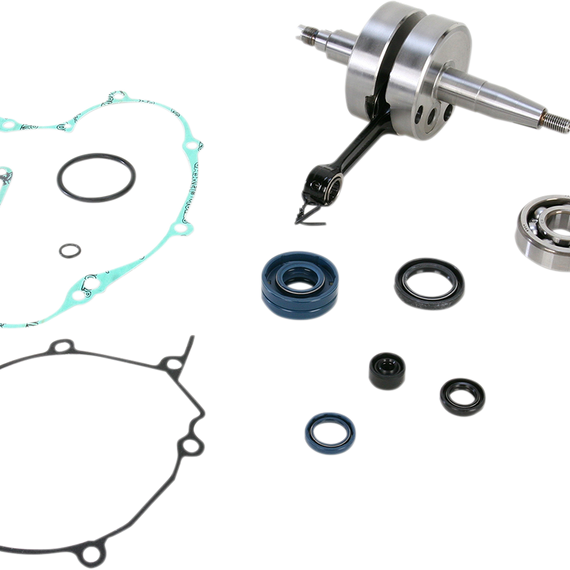 Caracteristicas: Include crankshaft, top end bearing, premium main bearings and a complete bottom end gasket set that includes all seals and gaskets needed to do the job Only one part number to stock and order Crankshafts are factory assembled and precision trued to OEM specifications Double-forged Wiseco connecting rods maintain superior dimensional consistency through improved grain flow Shot-peening eliminates residual stresses and smoothly blends the rod forging surfaces Corrosion-resistant surface treatment Top and bottom end rod bores case hardened to 58-62 RC to optimize bearing running surface Crank pin bearing radial running clearance is optimized to ensure maximum performance Precision honing ensures ultra round bearing surface Precision engineered oiling slots maximize rod strength and bearing life Double-drilled small ends provide the piston pin with extra lubrication and cooling, reducing distortion of top end due to thermal transfer from the piston Silver-coated bronze phosphor thrust washers, with dimpled design to increase oil retention and reduce friction between rod and washer interface Crank pin bearings are manufactured from the highest quality hot rolled steel; case-hardened to 58-62 RC Caged needle roller bearings provide the highest possible rpm Precision machined crank webs