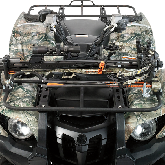 Caracteristicas: Premium ATV crossbow holder Soft rubber fins securely hold and cushion the crossbow Carries crossbows with or without attached quivers Support bars adjust for a custom fit Master mounting blocks attach to railings and racks on most brands of ATVs