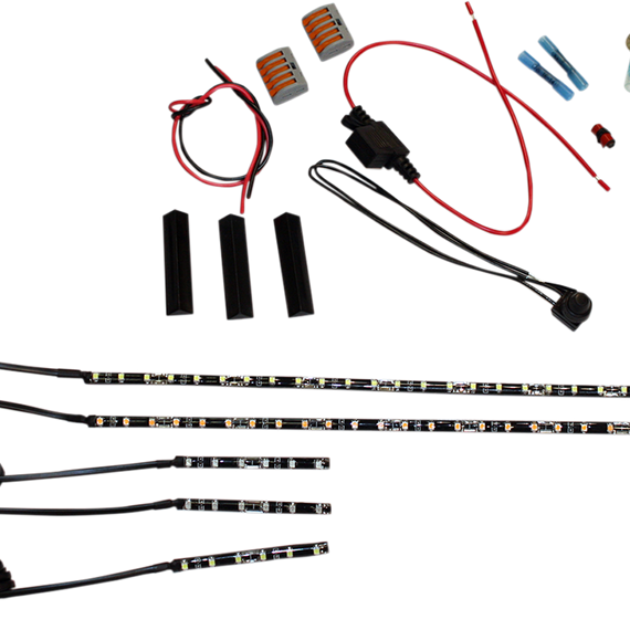 • Cruiser kit includes two 24-LED 12" strips, three 6-LED 3" strips, three mounting blocks and complete wiring listed above.
