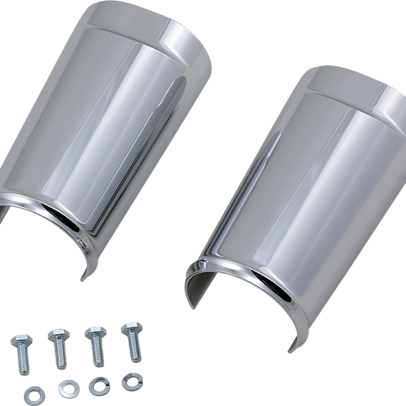 Caracteristicas: Features notched inside surfaces to allow direct bolt-on fitment of 18” x 5.5” wide/fat front fenders and wheel kits on touring models Universal design accepts all aftermarket fat/wide front fender kits Fork boots will work with factory and aftermarket fork legs CNC-machined from billet aluminum Check clearances when installing with fat front wheel/fender applications.