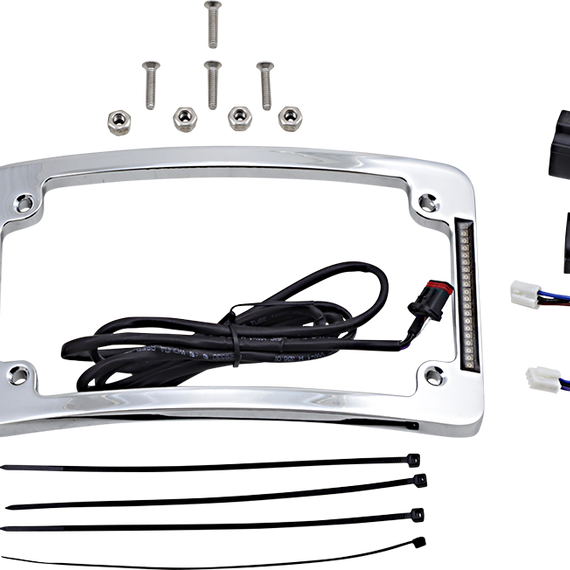 • Low profile aluminum radius (12 degree curvature) horizontal license plate frame