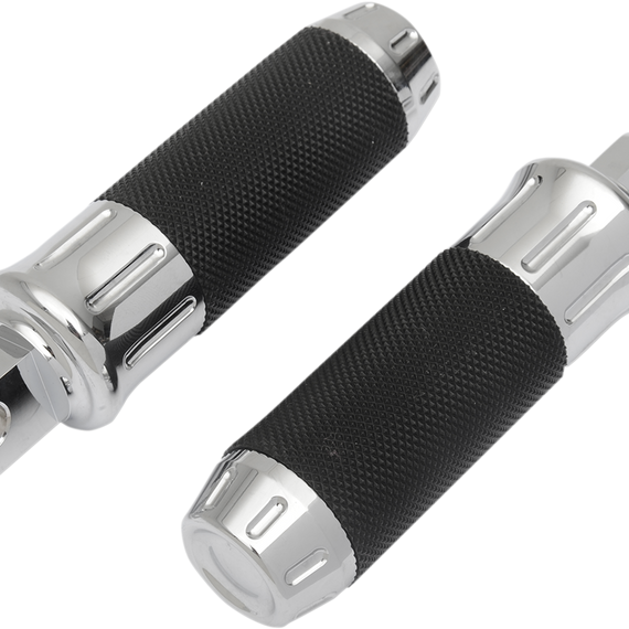Caracteristicas: CNC precision-made from billet 6061 T-6 aluminum Feature custom-tailored rubber grips for better performance and design Footpegs have male mounts to fit most Harley applications