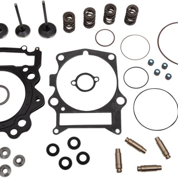 Caracteristicas: Kits contain all items to completely refresh and upgrade cylinder heads for popular Dirt/MX and Side x Side models Cylinder Head Service Kits include the below components: Lightweight Racing Valve Spring kits with steel or titanium retainers, beehive or dual valve springs, steel basewashers and Viton® valve stem seals A full set of C630 bronze high-performance valve guides for durability and heat management (standard size) A full top-end gasket kit including (base gasket, engine case gasket, exhaust gasket, head gasket, and other o-rings/washers depending on application)