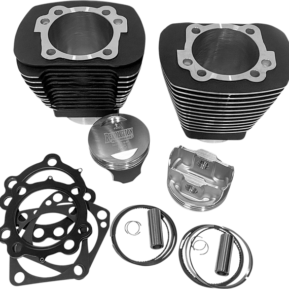 Caracteristicas: Revolution™ aerospace-grade all-aluminum cylinders with nickel-silicon-carbide electroplated bores which means NO SLEEVING; allows larger bore sizes and less friction for more horsepower, lower temps and a longer lifespan Monster power in a package that's tested, reliable and, most importantly, really big Includes Wiseco forged pistons with rings (that are specifically designed for optimal compatibility with Revolution Performance's cylinders), wrist pins, circlips and high-performance head and base gaskets Replacement head and base gasket sets available separately Made in the U.S.A. All kits require case-boring. For replacement pistons and rings