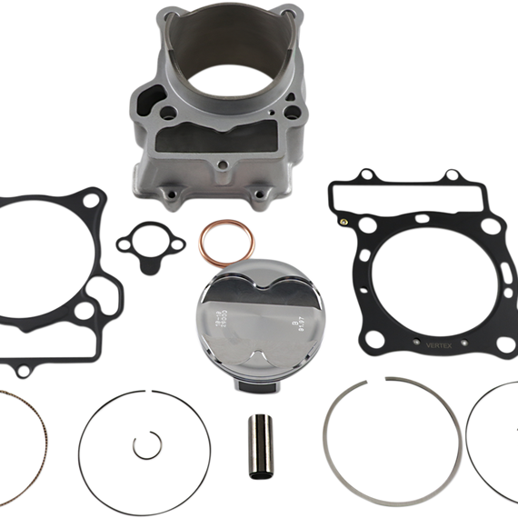 Caracteristicas: Ready-to-install, direct bolt-on cylinders require no re-plating and look virtually identical to the OEM cylinders Cylinder kits include matched Vertex pistons to ensure longevity, performance and reduced engine noise Nickel Silicon Carbide plated for long life Kits come complete with gaskets, cylinder, piston, rings, pin and clips Big bore cylinders do not require machine work Made in the U.S.A.