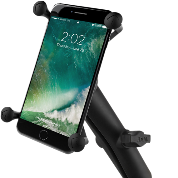 • Consists of the Tough-Claw™ rail clamp base, LONG length double socket arm and universal spring loaded X-Grip® cradle for large phones and phablets