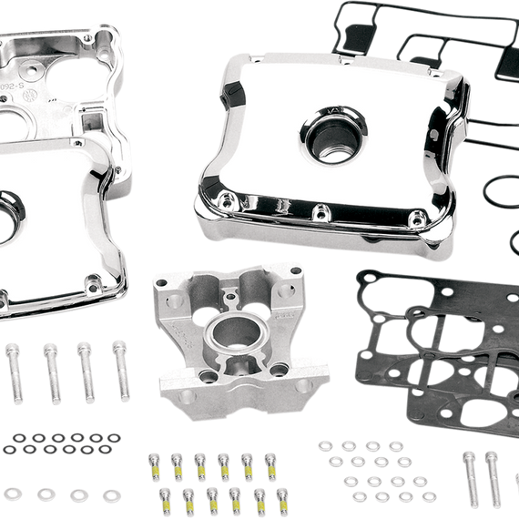 Caracteristicas: Positive O-ring seal ensures leak-free operation Can be installed with the stock engine in the frame in most applications Include rocker boxes, gaskets and mounting bolts Assembler must supply rocker shafts and rocker arms for all rocker boxes Rocker arm supports included Installation on Buell models requires removal of some material from the front motor mount Made in the U.S.A. It is the engine builder's responsibility to confirm all operating clearances.