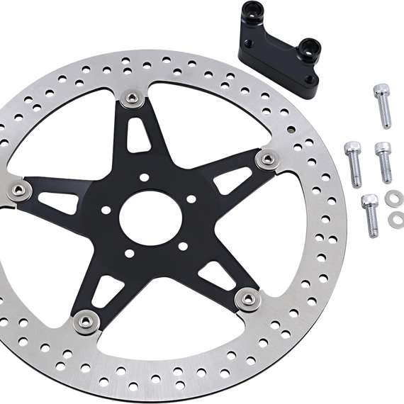 Caracteristicas: Provide 30% minimum more stopping power than factory-sized rotors Includes oversized floating stainless-steel rotor and billet brake caliper adapter and necessary hardware Designed to work with factory fork legs