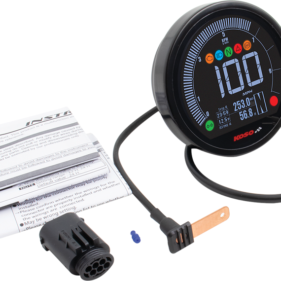 Caracteristicas: Plug and play meter Featuring speed, odometer, tripmeter, hour meter, voltage, clock and stopwatch as well as 6 indicator lights 11/16" is face depth