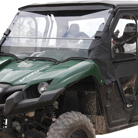 Caracteristicas: Work with the hard top and any windshield Sturdy 3/4" tubular steel frame Durable UV-resistant PVC-coated heavyweight nylon fabric Install using Viking half doors Easy installation; requires drilling two holes in each standard half door Magnetically sealed access flap for reaching the door latch from inside the cab Integrated back panel with a large, clear, zippered vinyl window Rear and side windows can unzip for ventilation Integrated tie/storage solution for unzipped windows to keep them out of the way Reinforced panels on rear window Steel bar to support rear panel Extra window on the bottom half of the doors for added visibility to maneuver in tight spots Integrated bracket for installing side view mirrors Handy pull tabs so the doors can be installed without removing the hard top Extra vinyl on side windows for improved visibility