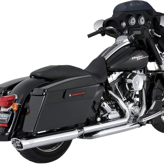 Caracteristicas: Independent 1-3/4" header pipe system for maximum performance Includes 220° full-length 2-1/8" heat shields For use with any '09-'16 OEM-style mufflers Perfect complement to Vance & Hines slip-on mufflers (not included) Trike models require adapter kit (not included) CVO models require floorboard extension kit (not included) Made in the U.S.A.
