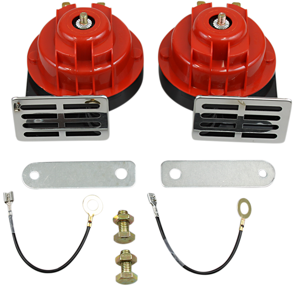 Caracteristicas: Loud, two-horn set Dual tone - high and low Zinc-plated exterior to avoid corrosion Consistent sound Protective grill over the bell to keep mud and debris out Easy to install; mounting brackets included Relay not included, nor is one required.