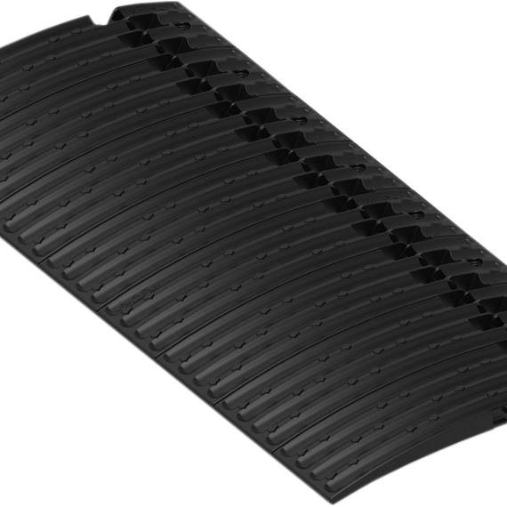 Caracteristicas: Innovative design provides smooth edge transition from the ground to your trailer or ramp Incorporate Caliber's proven friction-reducing glide technology Multiple fastening points for strong mounting; integrated edge for easy location fastening Great for transition from door to deck Great for eliminating snow trap between door and deck Sets for enclosed trailers feature heavy-duty easy-flip hinges Width accommodates all skis, ski stances and ATV/UTV tires 10-piece set can be fastened in a fixed position for tilt trailers High-impact plastic (HDPE) construction won't crack, chip, break or warp out Stainless steel Torx T-20 screws install with ease (driver included) Dimensions: 8 3/4" x 5 7/8" x 1/2" Made in the U.S.A.