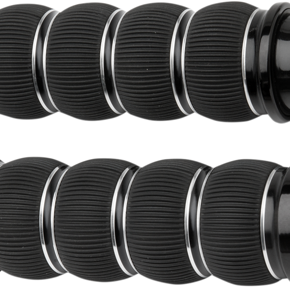 Caracteristicas: Each grip design features excellent traction for your hands Billet aluminum accents are intricately machined Features a linear knurled rubber grip with integrated air pillows for extreme comfort; collars, rings and end caps machined from billet aluminum for an excellent look All grips come with throttle sleeve installed and include grip glue and simple to follow instructions Matching footpegs and shifter pegs are available separately