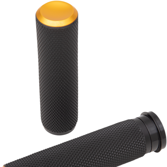 Caracteristicas: Each grip design features excellent traction for your hands Billet aluminum accents are intricately machined Diamond Knurled rubber design features diamond knurled grips with integrated billet end caps for a clean design All grips come with throttle sleeve installed and include grip glue and simple to follow instructions Matching footpegs and shifter pegs are available separately