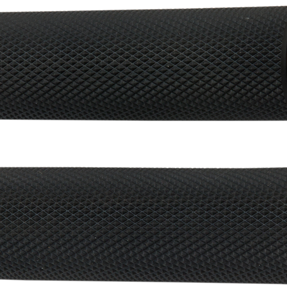 • Diamond Knurled rubber design features diamond knurled grips with integrated billet end caps for a clean design