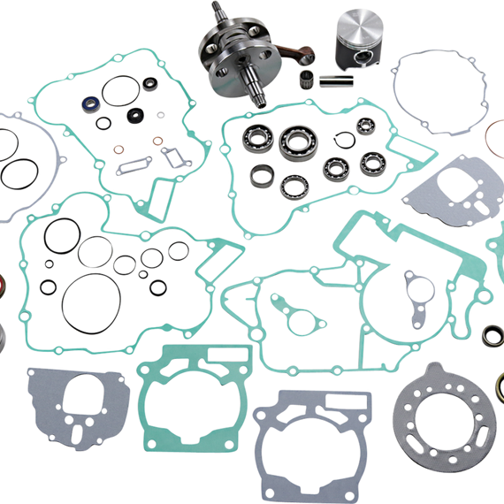 Caracteristicas: Complete engine rebuild kit Includes crankshaft, piston kit, complete engine gasket kit with oil seals, main bearings and seals, water pump rebuild kit, transmission bearings, countershaft bushing/seal kit, wrist pin bearing, cam chain and counter balancer bearings when applicable