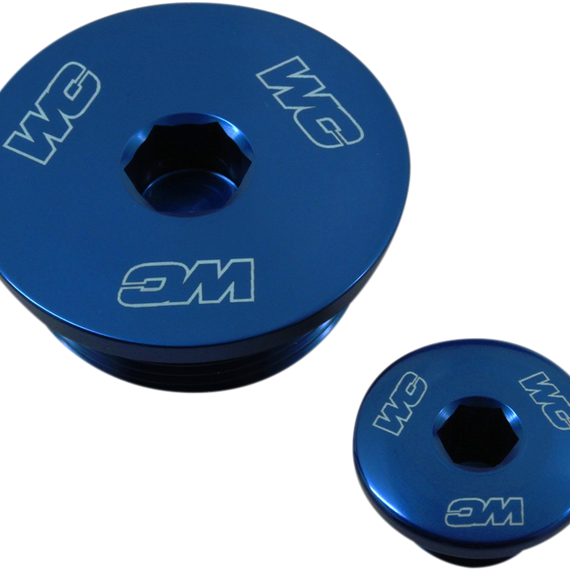 Caracteristicas: Precision machined from 6061 T-6 aluminum Simple positive installation with an Allen wrench Replaces the stock plugs Polished to a mirror finish prior to anodizing resulting in a brilliant look Laser Engraved WC logos Made in the USA