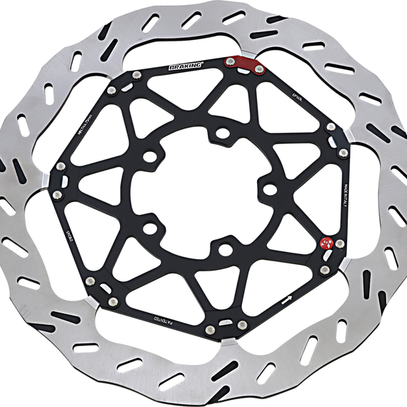 Caracteristicas: Designed with input from Braking's working experience with best teams in most important competitions in the world (SBK and SS) The braking track ensures a better heat dissipation, ensuring a steady friction coefficient The new connection structure allows a more controlled radial axial play, with a better load transfer between the braking track and the carrier Thermal design optimized Maximum weight-to-performance ratio Consistent disc temperature Absence of heat spots Direct load transfer between rotor and hub No pin deformation due to applied load