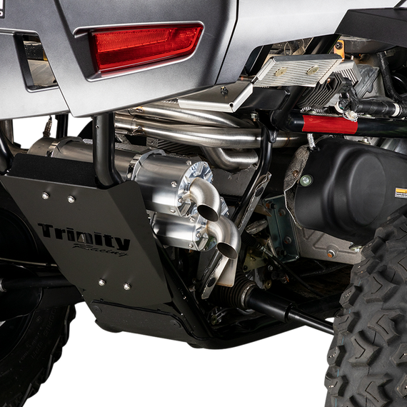Caracteristicas: 304 brushed stainless steel mid pipe Dual aluminum mufflers Fully Tig Welded 6061 Billet Muffler Clamps Oxygen sensor bung USFS approved spark arrestors Significant horsepower and torque gains Made in the USA