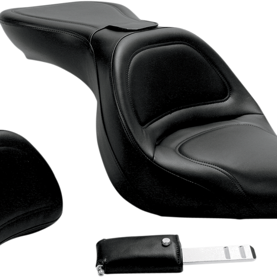 Caracteristicas: Comfortable touring design with ergonomic styling Supple SaddleHyde™ offers a combination of comfort, glove-soft leathery feel and weatherproof, no-maintenance good looks Exclusive unique split-cushion design separates the seating surface from the lumbar support, reducing tailbone and back pressure for maximum long-range comfort SaddleGel™ in both driver and passenger portions increases comfort even during long trips Made in the U.S.A.