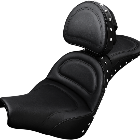 • Designed and contoured for two-up touring comfort; match all studded saddlebags and luggage