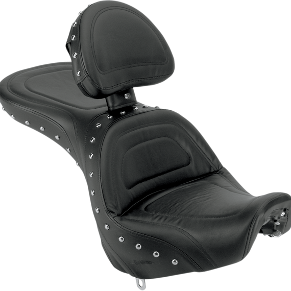 Caracteristicas: Designed and contoured for two-up touring comfort; match all studded saddlebags and luggage Split-cushion design separates seating surface from lumbar support, reducing tailbone and back pressure SaddleGelƒ?½ in both driver and passenger areas increases comfort during trips of any length Supple SaddleHydeƒ?½ offers a combination of comfort, glove-soft leathery feel and weather-resistant, no-maintenance good looks Also feature 1/2" chrome-plated brass studs that follow a special stitch pattern Made in the U.S.A.