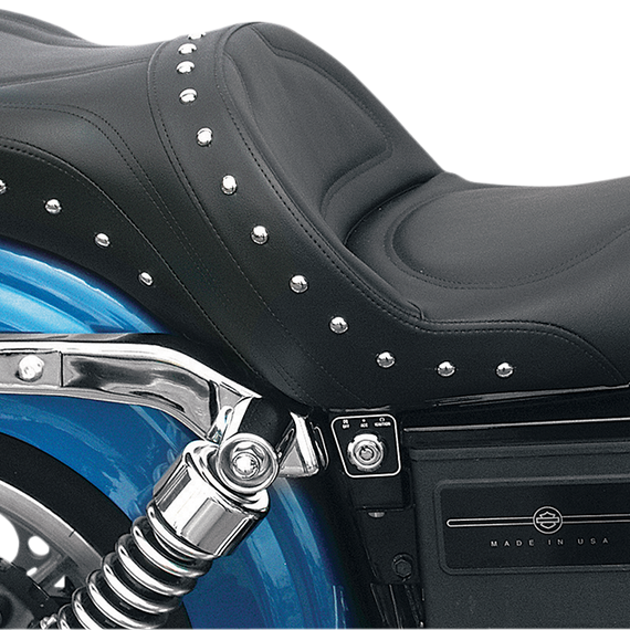 Caracteristicas: Designed and contoured for two-up touring comfort; match all studded saddlebags and luggage Split-cushion design separates seating surface from lumbar support, reducing tailbone and back pressure SaddleGel™ in both driver and passenger areas increases comfort during trips of any length Supple SaddleHyde™ offers a combination of comfort, glove-soft leathery feel and weather-resistant, no-maintenance good looks Also feature 1/2" chrome-plated brass studs that follow a special stitch pattern Made in the U.S.A.