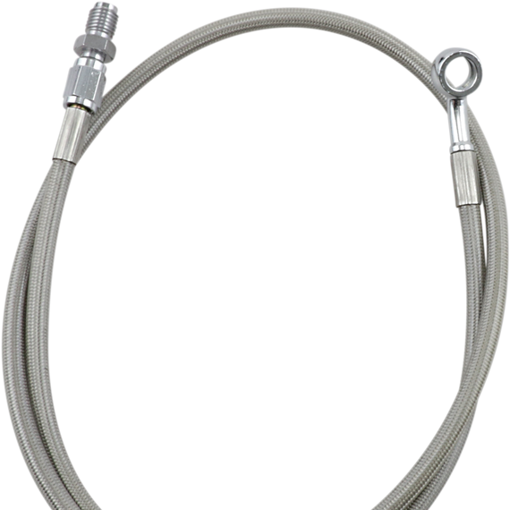 Caracteristicas: Brake lines are made with a PTFE smooth-bore liner with extra-tight stainless over braid, virtually eliminating any expansion Brake lines are finished off with a UV-protective coating that prevents damage to chrome and painted surfaces All fittings are plated multiple times to provide excellent corrosion protection and give a great look Replace stock brake line and are at least 6" longer than stock length