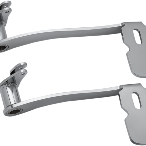 Caracteristicas: Moves the brake pedal location forward and down while flattening the angle of the pad Eliminates your foot being "under" the brake pedal, for a more natural feel when moving your foot from the floorboard to the brake pedal Polished, chrome-plated finish Bronze bushing with grease fitting for long life For use with floorboard-equipped bikes Compatible with engine-guard mounted cruise pegs and Küryakyn's Cruise Arm Mark III (adjustment range of Cruise Arm Mark III may be slightly reduced)