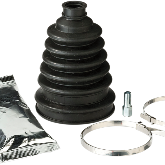 Caracteristicas: Perfect for ATVs and UTVs with extended suspension axles as found on Polaris RZR's, Can Am Mavericks, and many other off road vehicles. Fits both inner and outer joints on both front and rear axles for unmatched coverage Made from premium quality rubber in the USA Each kit includes a fast boot X, stainless steel clamps, CV grease, and detailed instructions
