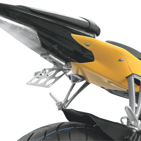 Caracteristicas: Eliminate the rear fender to give your bike a cleaner race-style look Made from CNC laser-cut 304 stainless steel Flush-mount rear LED turn signals and LED license plate light included Hardware and instructions for easy installation Made in the U.S.A.