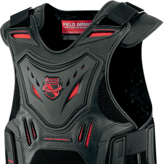 Caracteristicas: CE-approved back armor D3O® breathable back insert with custom-molded Icon geometry Articulating injection-molded back armor with airflow channels Injection-molded chest plate with integrated air intakes Vented Bio-Foam and airmesh chassis HydraDry moisture-wicking liner Highly-adjustable waist and shoulder straps Low-profile design fits under most jackets Hi-viz vests are designed to pass U.S. military high-visibility specification requirements