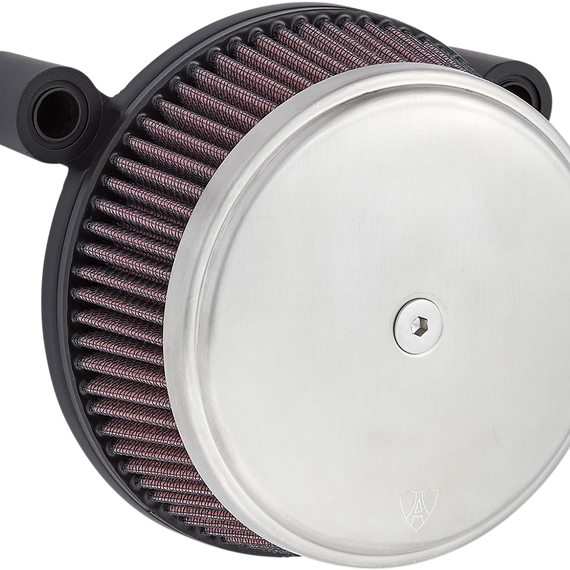 Caracteristicas: Features a one-piece aluminum backing plate/carb support bracket with patented hidden breather technology and radius air inlet Breather passages exit at the mouth of the carburetor/throttle body, creating a virtually closed-loop system Kit includes high-performance filter, backing plate and steel outer cover All necessary hardware and instructions are included with each kit