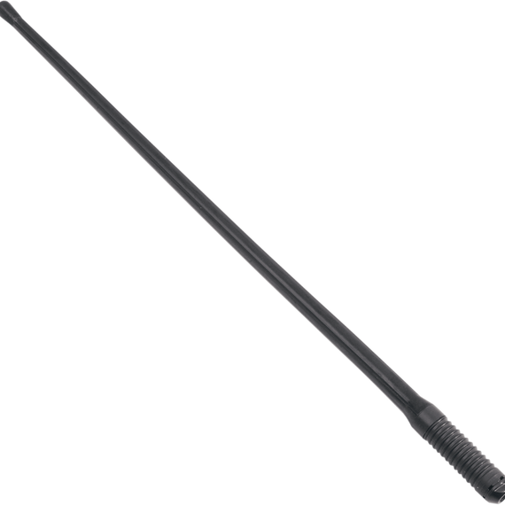 Caracteristicas: Helically wound, 14" flexible black rubber antenna Provides performance similar to longer vertical-mast antenna Screw-on installation; attaches to the OEM radio antenna mount